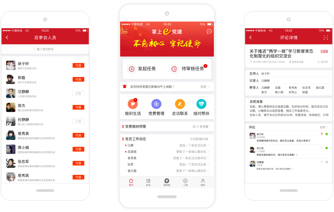龍訊積極響應(yīng)國家號召,深入解讀《規(guī)劃》要義,理解最新政策精髓,全新升級發(fā)布“智慧黨建云平臺”,運(yùn)用最新互聯(lián)網(wǎng)和信息化技術(shù),創(chuàng)新完善“智慧黨建”管理工作系統(tǒng),助力全國各級黨組織有效加強(qiáng)黨務(wù)管理、提升服務(wù)群眾水平、強(qiáng)化大數(shù)據(jù)分析能力,擴(kuò)大了黨在互聯(lián)網(wǎng)應(yīng)用領(lǐng)域的數(shù)字化影響力。同時,該平臺已經(jīng)成功服務(wù)于全國眾多黨政機(jī)關(guān)和企事業(yè)單位,成為廣大黨員和黨群工作者了解黨群信息、交流黨群建設(shè)經(jīng)驗(yàn)、研討學(xué)習(xí)黨群建設(shè)理論的重要載體,以及群眾參與黨的建設(shè)、密切黨群關(guān)系的重要途徑。