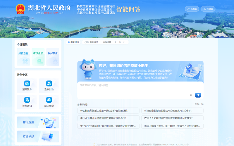 湖北三項信用貸款服務(wù)平臺“AI信貸助手”