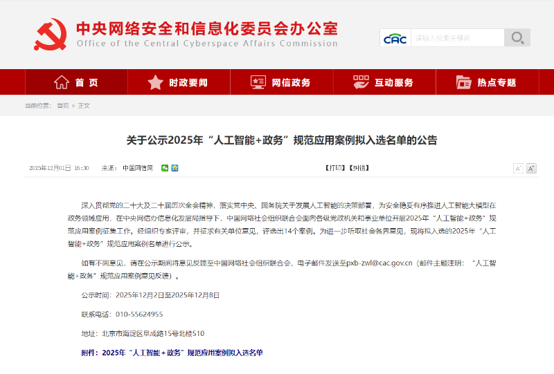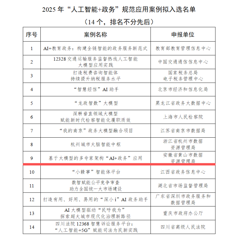 日前,中央網(wǎng)信辦信息化發(fā)展局指導、中國網(wǎng)絡社會組織聯(lián)合會組織評選2025年“人工智能+政務”規(guī)范應用案例,黃山市“基于大模型的多專家架構(gòu)‘AI+政務’項目”成功入選,是我省唯一入選的“人工智能+政務”項目。2025年9月,黃山市“AI+政務”項目獲評2025世界制造業(yè)大會“安徽省信息化十件大事”。本次入選中央網(wǎng)信辦“人工智能+政務”規(guī)范應用案例,標志著黃山市“AI+政務”項目,已成為引領(lǐng)全國“人工智能+政務”項目的標桿之一。