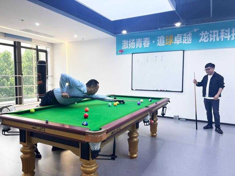 在臺球比賽中,共有28名選手參與競技。比賽進(jìn)行的十分激烈,選手們集中精力,冷靜應(yīng)對,時(shí)不時(shí)連續(xù)精準(zhǔn)進(jìn)球,時(shí)不時(shí)為對方制造障礙,多次出現(xiàn)了雙方爭奪黑八進(jìn)球一桿定勝負(fù)扣人心弦的場面。經(jīng)過層層淘汰、激烈角逐,最終,龍訊科技總經(jīng)理賀良震憑借出色的技術(shù)和穩(wěn)定的發(fā)揮,奪得了臺球比賽的冠軍,營銷三部王青樹、Java開發(fā)部張超分別榮獲亞軍、季軍。